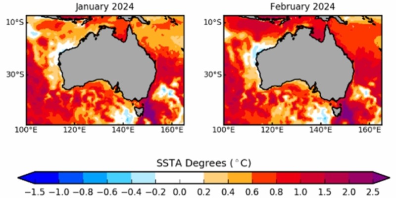 호주 남동부 일대 앞바다가 내년까지 평년보다 높은 수온이 계측 가능한 범위를 넘어 오를 것으로 관측되면서 인근 해역 생태계가 변할 것으로 예상된다고 가디언이 예보했다. 호주 기상청 소속 해양학자는 가디언을 통해 "우리가 사용하는 장비는 수온 상승을 색으로 보여주지만 이번에 상승한 수온이 너무 높아, 올해 가지고 있는 장비로는 표시할 수가 없었다"고 말했다. 해양학자는 수온 상승이 계측 가능 수치를 넘어선 것이 이번이 처음이라며 이번에 수온이 올해 9월부터 내년 2월까지 호주 남동부 태즈매니아주와 빅토리아주 앞바다 수온이 평년보다 3도 이상 오를 것으로 내다봤다.호주 남동부 해안은 기후변화의 영향을 많이 받는 해역으로 동부 해류가 따뜻한 물을 남쪽으로 끌어와 수온 변동에 있어서 다른 해역보다 온도가 4배 빠르게 오른다. 대기 기온이 올라간 것도 수온 상승에 영향을 미친 것으로 보인다.호주연방과학산업연구기구(CSIRO) 자료에 따르면 인근 해역에서 주로 잡히는 어종인 연어대신 난류성 어종인 고등어 어획량이 크게 늘었다. 한국도 통계청 자료에 따르면 수온 변화로 고등어 어획량이 지난 50년 동안 2배 가까이 늘기도 했다. 존 리틀 CSIRO 연구원은 "수온 상승의 요인을 현 시점에서 명확한 결론을 낼수는 없지만 대기 기온 상승이 주 요인이고 그 외에도 여러 복합적인 요인들로 보는 것이 옳다고 생각한다”고 말했다.