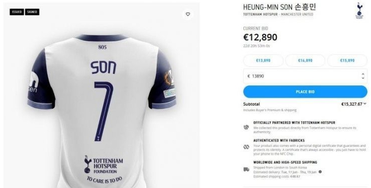 유로파 우승 손흥민 유니폼 7700만원에 팔려,,,,,,,낙찰자는 한국인