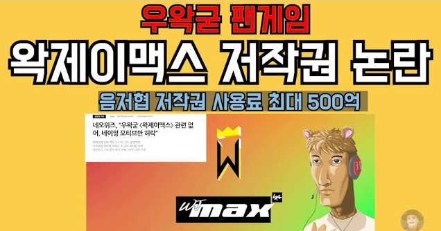 우왁굳 왁제이맥스 551억 저작권료 징수 위기,,,,,,,무단 음원 수록에 음저협 ‘법적 대응’