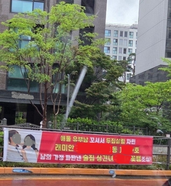"애 둘 유부남 꼬셔 OO동 OO호" 개포 신축 아파트에 걸린 현수막에,,,,,,,"화끈하네…