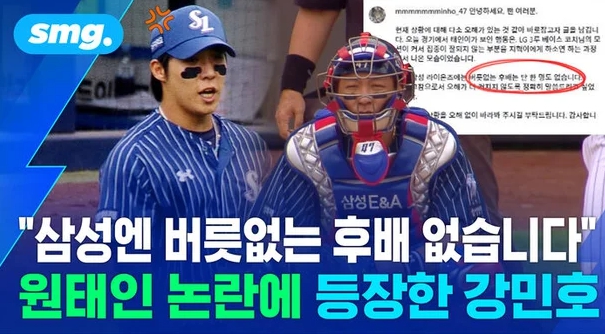 삼성 원태인 하극상 논란에, 강민호 "버릇 없는 후배 없다"고 해명, 그런데 불이 더 커졌다?