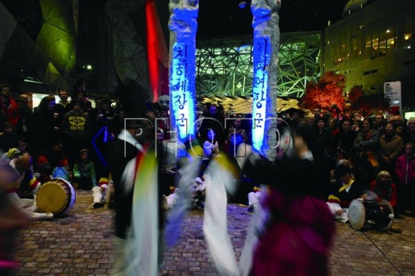 ▲ ‘천하대장군’, ‘지하여장군’ 앞에서 한국 전통 공연을 보여주는 모습 ⓒ YOUNGMOK LEE |