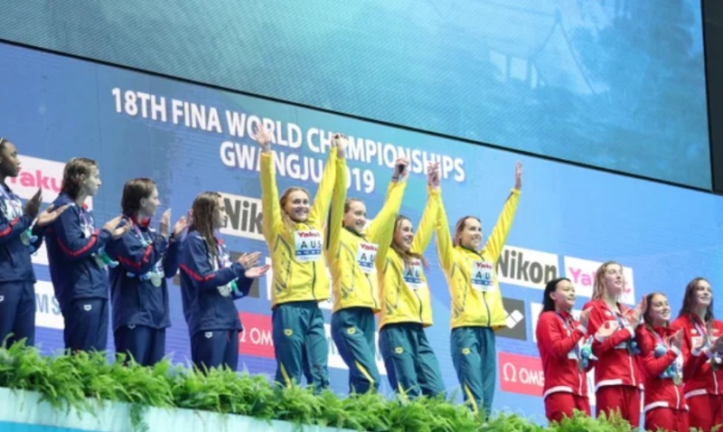 호주, 세계수영선수권 남녀 계영 400m 석권,,,,여자부는 '세계신기록'