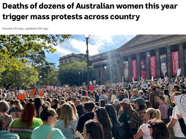 호주 공영 ABC 방송, AAP 통신 등에 따르면 28일 수도 캔버라에서 시민 수천 명이 모여 국회의사당으로 행진하며 여성에 대한 폭력 범죄를 근절하자는 대규모 시위가 열렸다. 이번 시위는 지난 26일부터 시드니, 멜버른, 브리즈번, 골드코스트 등 호주 전역에서 시작되어 이날 캔버라의 의사당 앞 잔디밭 집회로 마무리됐다. 시위를 주최한 인권단체 '디스트로이 더 조인트'는 올해 들어 최소 27명의 여성이 이전 또는 현재 파트너의 폭력으로 살해됐다면서 이는 지난해 같은 기간 비해 두 배 가까이 늘어난 것이며, 나흘마다 여성 1명이 남성에 의해 살해되고 있다고 지적했다. 최근에는 시드니의 한 쇼핑몰에서 한 남성이 흉기 난동으로 6명을 살해했는데, 이 가운데 여성이 5명이라면서 범인이 여성을 노린 범죄라고 주장했다. 앤서니 앨버니지 호주 총리와 케이티 갤러거 여성부 장관, 어맨다 리슈워스 사회서비스부 장관 등은 시위대와 함께 행진하고 집회에도 참여했다. 앨버니지 총리는 "여성이 평균 나흘마다 1명씩 파트너의 손에 죽는다는 것은 단순히 공감하는 것을 넘어 정부로서 더 많은 일을 해야 한다"라고 말하면서 "국가의 문화, 태도, 법률 시스템 등 모든 접근 방식을 바꿔야 하고, 이 문제가 여성에게 달려 있는 것이 아니라 남성의 행동을 바꾸는 것에 달려있다는 것을 확실히 할 것"이라고 강조했다. 이번 시위에 참여한 한 임상 심리학자는 "지난 50년간 이런 시위를 해왔지만, 여성들의 계속되는 죽음과 피해에 정말 지쳤다"라고 말했다는데,,,,,남성의 행동을 어떻게 바꿀지, 정부의 대책은 무엇인지 두고 볼일이다!!!!