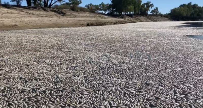 호주 뉴사우스웨일스(NSW)주 메닌디지역의 달링-바카강 수면에 수만 마리의 물고기들이 떼죽음으로 뒤덮혔는데 가을 초입에 갑작스런 폭염으로 수온이 높아진 탓에 발생했다고 BBC가 보도했다. 불과 3년 전에도 대규모 물고기 죽음을 겪었던 마을 주민들은 "갑작스런 광범위한 홍수로 극한 상황을 경험한 상황에서 갑작스런 폭염이 더 큰 스트레스를 주었다"고 말했다. 인간이 유발한 기후변화의 폭염은 더 자주, 더 강렬하고 더 오래 지속된다. 전 세계 정부들이 탄소 배출량을 급격히 줄이지 않는 한 기온은 계속 오를 것이며 세계는 이미 1.1도 정도 따뜻해졌다. 죽어 썩어가는 물고기가 더 많은 물속 산소를 빨아들여 더 많은 물고기들이 죽을 것으로 우려된다. 메딘니 지역 주민들은 죽어 썩어가는 물고기들에서 나는 냄새들로 폭염에 에어컨도 없이 문을 닫은 상태에서 주민들이 고통을 겪고 있다. 또한 달링-바카강에 물 공급을 의존하고 있는 주민들이 "씻고 샤워하기 등에 더이상 강물을 사용할 수 없을 것"이라고 우려했다.