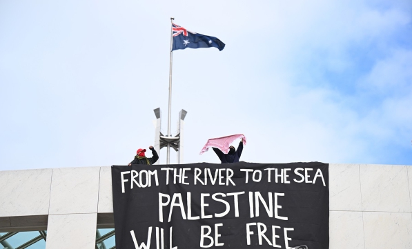 '호주 국회의사당 옥상서',,,,,,,"친팔레스타인 시위대, 현수막 시위"