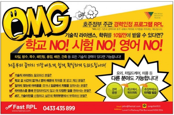 <저희는 RPL이라는 제도를 통해 호주 내, 외의 경력을 호주 내에서 인정받을 수 있는 licence(자격증)나 certificate(학위)로 변환하는 일을 도와드리고 있습니다>